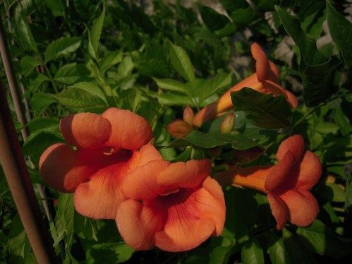 fiori rossi come la radicans ma fiorisce molto e in modo prolungato; fogliame verde scuro.