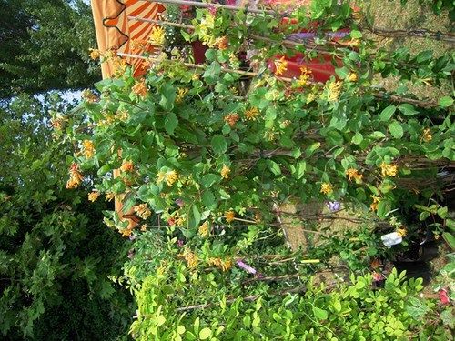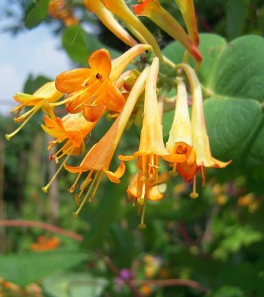 Rampicante volubile, decidua o semisempreverde; foglie appaiate, blu-verdi lunghe sino a 8 cm. Da giugno a settembre produce lunghi fiori a tromba, gialli, persistenti, bilabiati. Bacche rosso-arancio. Altezza 4 mt.
