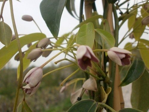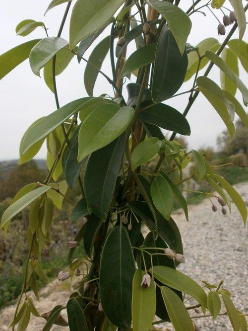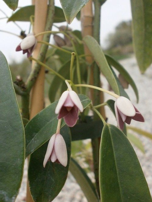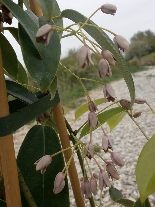 Rampicante sempreverde, vigorosa, con foglie composte da 3-7 foglioline verde scuro, ovate con margini ondulati. Fiorisce in primavera. I fiori sono profumati, tubulari, piccoli (2 cm), rosa pallido, riuniti in racemi ascellari, dioici. Ai fiori femminili impollinati possono seguire in autunno frutti a forma di salsiccia (simili a quelli dell'Akebia), commestibili, color porpora, lunghi 5 cm. Coltivare in posizione riparata.